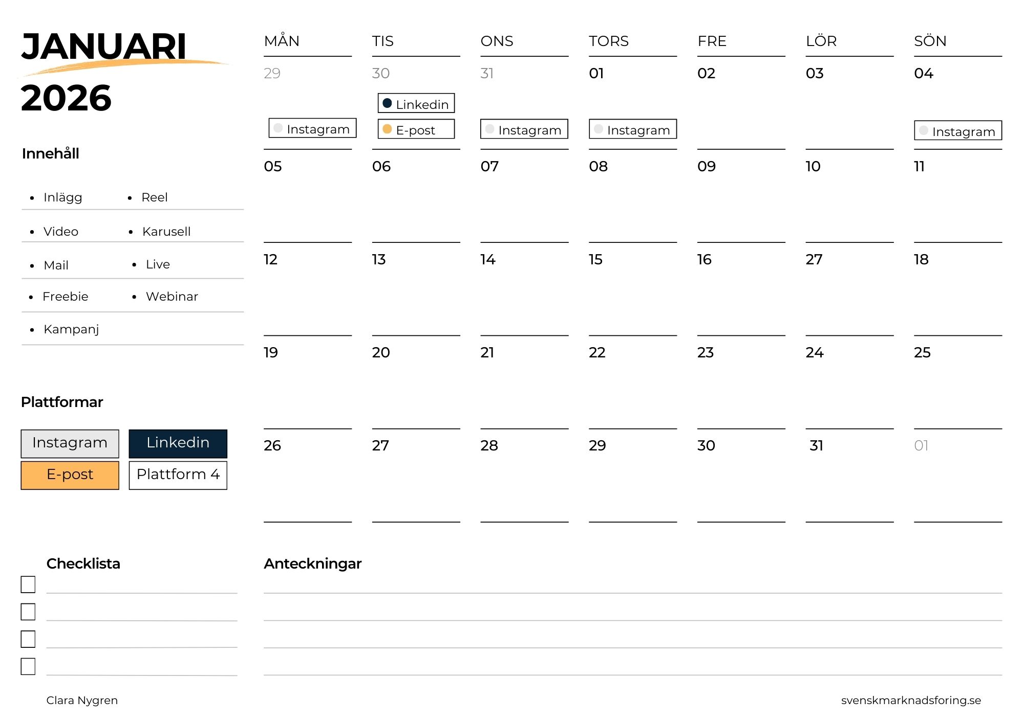 Ladda min gratis mall som du kan använda till alla dina sociala kanaler, så att du attraherar rätt följare, bygger förtroende och skapar innehåll som leder till bokning. Fyll i dina uppgifter nedan för att få mallen.